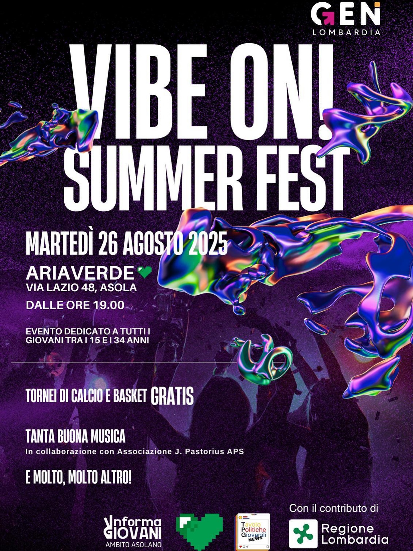 Martedì 26 Agosto 2025 alle 19.00 presso l' AriaVerde Asola di Asola ti aspettano sfide entusiasmanti e tanta musica! Un evento dedicato ai giovani e alle giovani del nostro territorio.