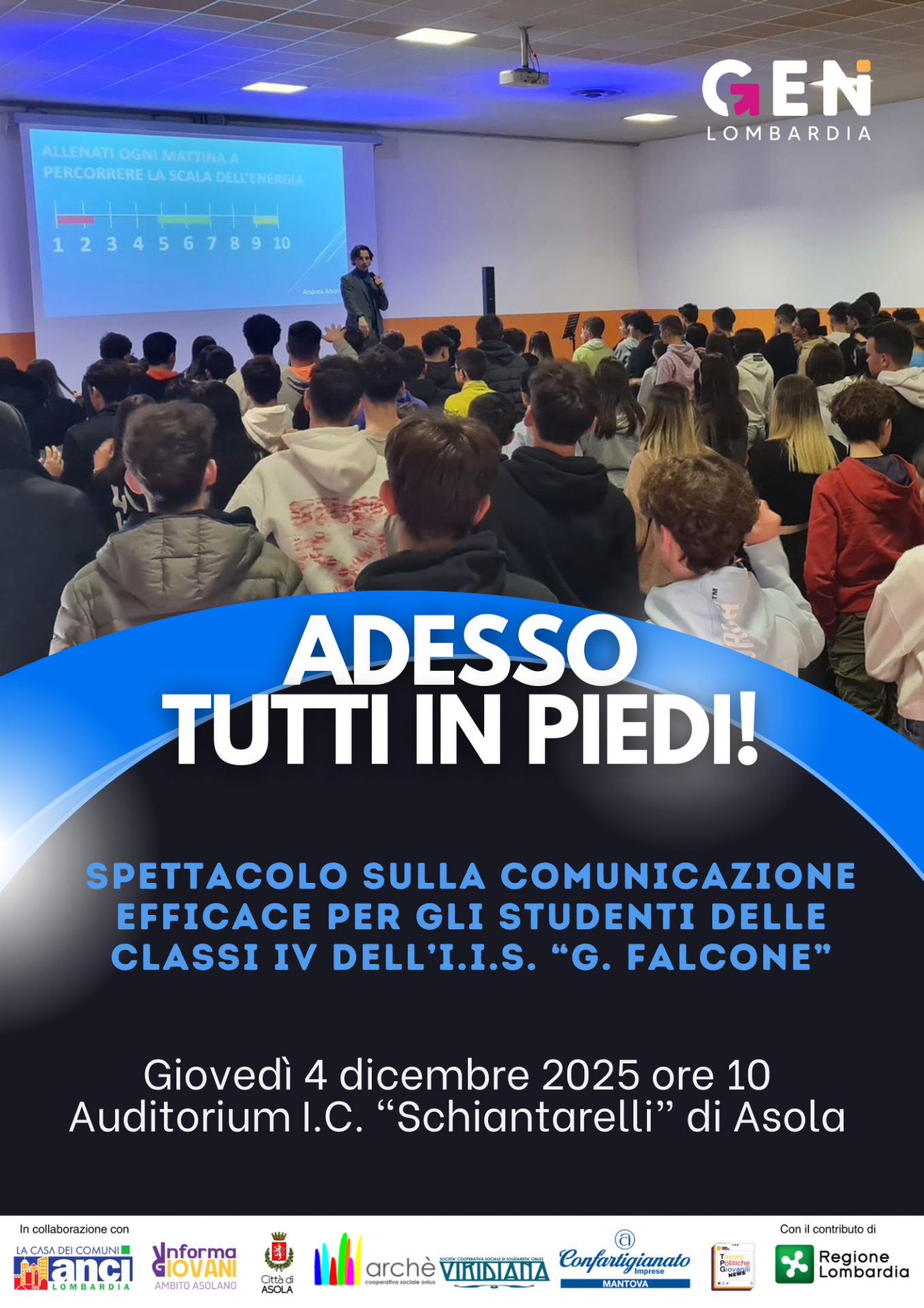 Giovedì 4 dicembre, alle 10:00, all’Auditorium Schiantarelli dell’I.C. Asola, gli studenti delle classi quarte dell’IIS “G. Falcone” vivranno uno spettacolo speciale dedicato alla comunicazione efficace.